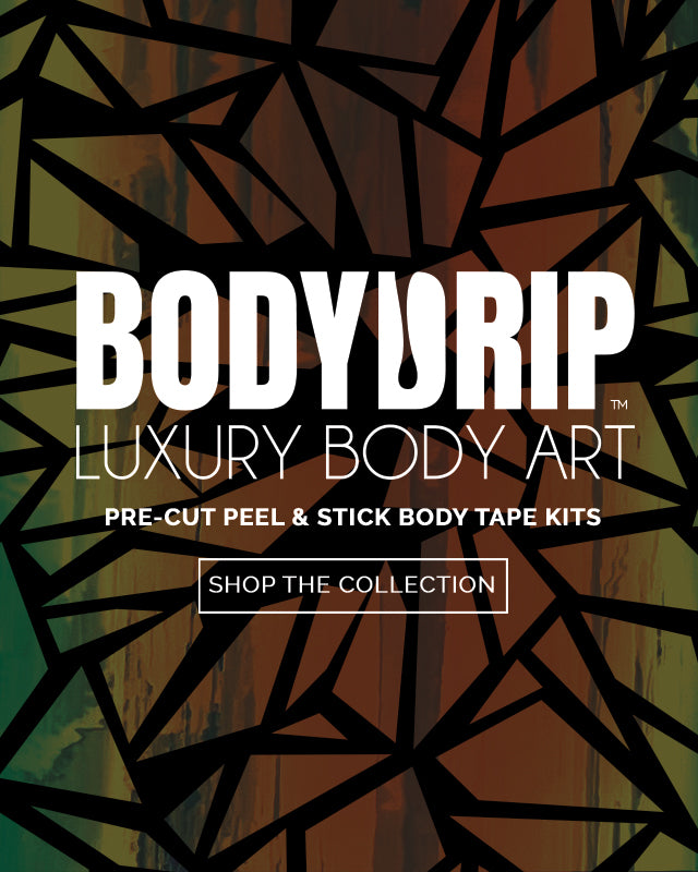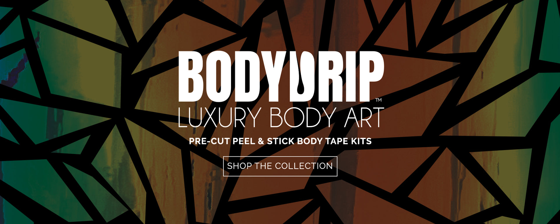 BODYDRIP™ Kits redefine body art. Luxury tape in eight incredible colors, ready to sculpt bold, seamless designs without scissors or limits. No cutting, no scissors, no problem.